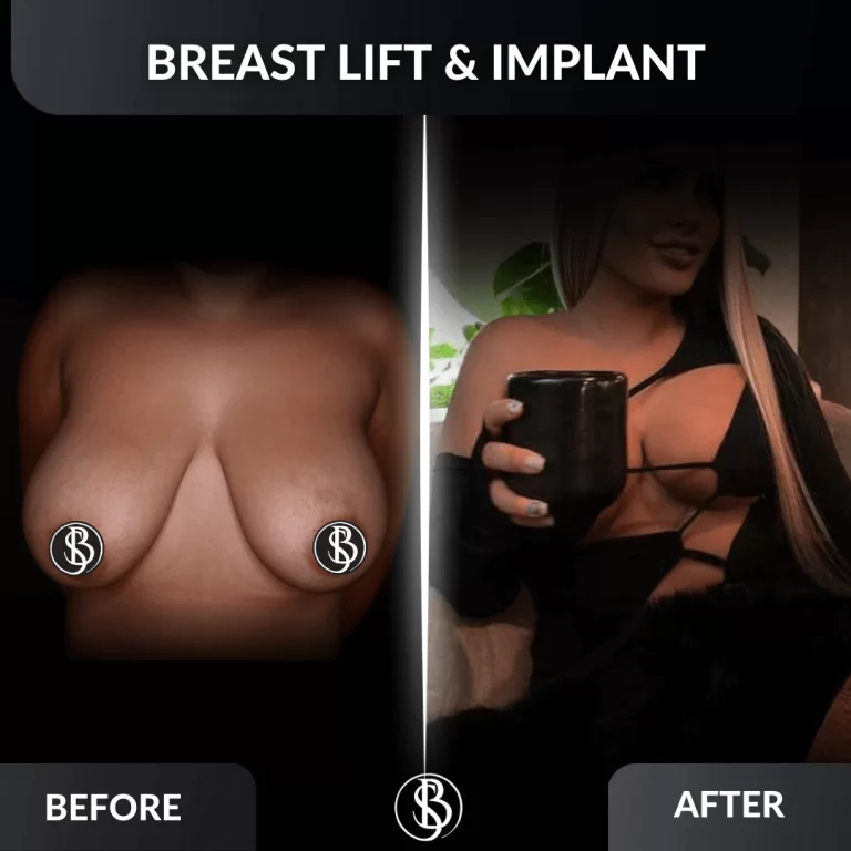 Breast augmentation surgery is most commonly combined with breast lift. Here, the aim is to lift up the breast characterized with sagging and loss of volume and to increase its volume.